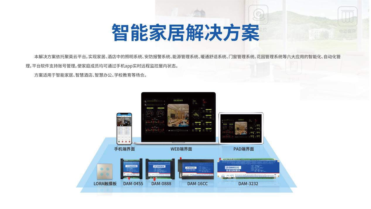 本解決方案依托聚英云平臺,實現家居、酒店中的照明系統、安防報警系統.,能源管理系統、暖通舒適系統、門窗管理系統.花園管理系統等六大應用的智能化、自動化管理,平臺軟件支持賬號管理,使家庭成員均可通過手機app實時遠程監控屋內狀態。