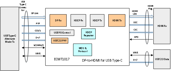 4. ECMT1017 USB Type-C的DP轉HDMI連接芯片