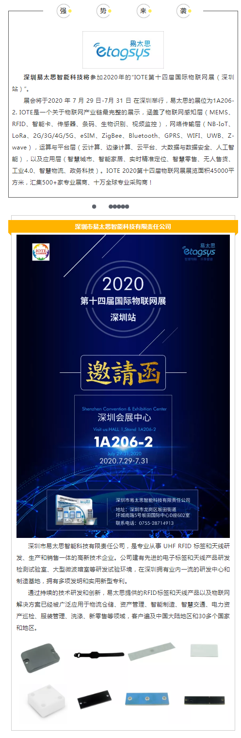 深圳易太思智能科技將參加2020年的“IOTE第十四屆國際物聯網展