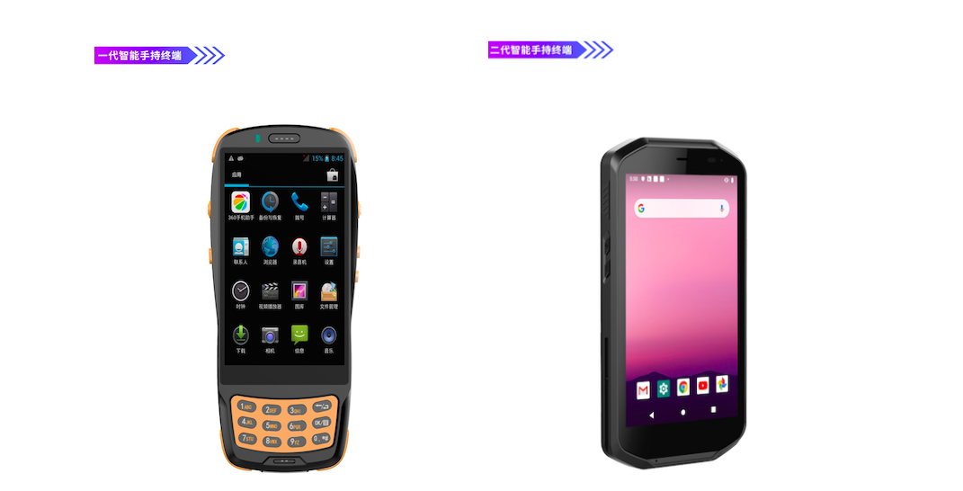 第三代智能手持終端的出現,很好的解決如上問題,交互方式依然是全面屏,但數據采集則由AI算法+攝像頭取代掃碼頭來實現,整機性能也比上一代更高,產品更為輕薄便攜,握感更佳,且由于減少了掃碼頭配件成本,售價也更加友好。