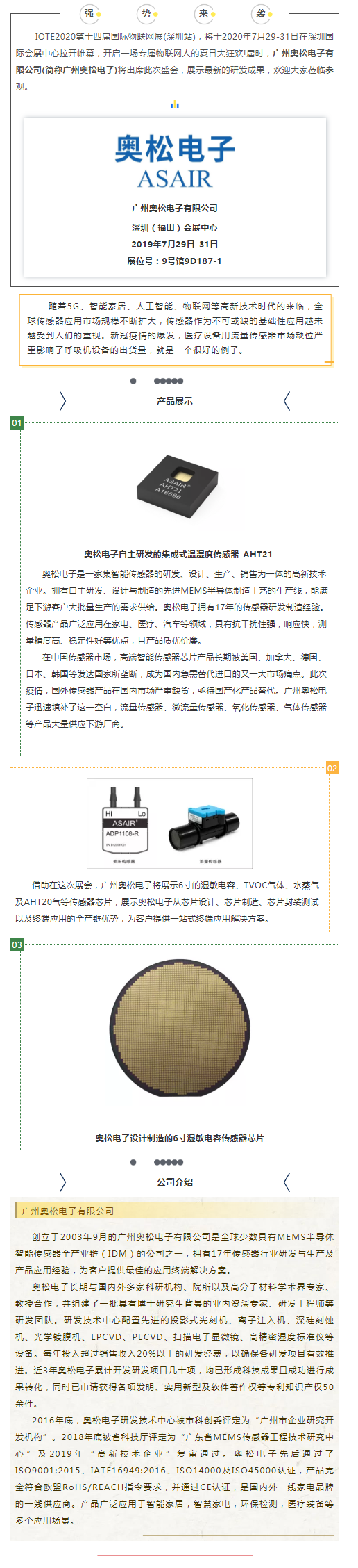 MEMS半導體智能傳感器芯片即將閃耀IOTE2020物聯網展會
